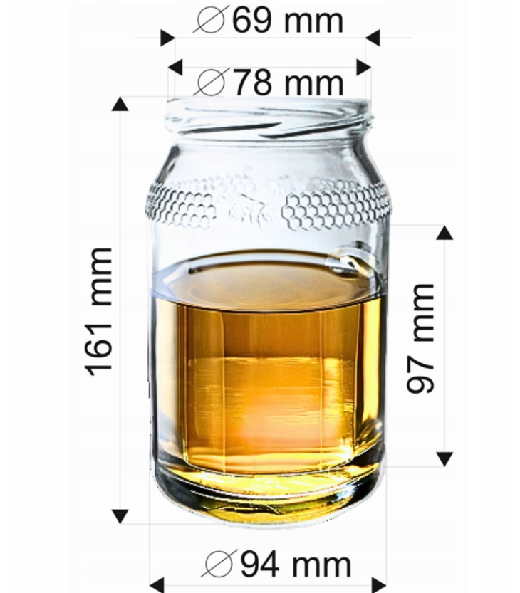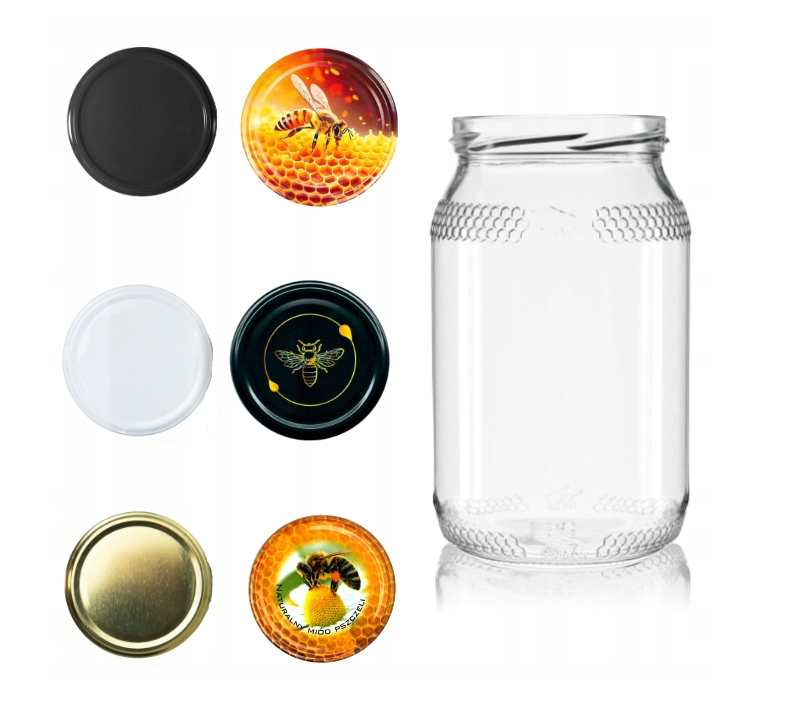 1x 900ml Słoik szklany wzór miodowy słoiki szklane na miód + zakrętka do wyboru1x 900ml Słoik szklany wzór miodowy słoiki szklane na miód + zakrętka do wyboru