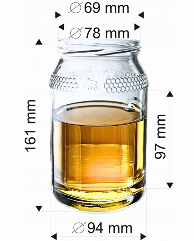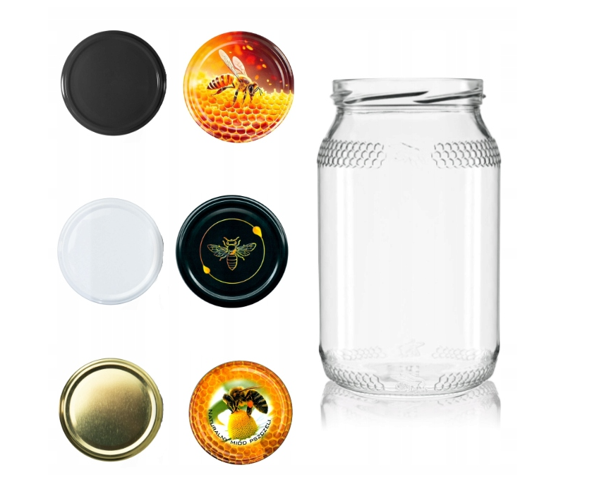 Strona główna » Słoiki szklane » 900ml wzór » 6x 900ml Słoik szklany wzór miodowy słoiki szklane na miód + zakrętka do wyboru